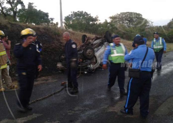 Jordy Antonio Potoy, de 24 años de edad, viajaba, supuestamente, en estado de ebriedad y a exceso de velocidad cuando en una curva del kilómetro 28 de la carretera Panamericana Norte, en Tipitapa, perdió el control del vehículo que conducía hasta terminar volcado, producto del percance el automotor de forma rápida tomó fuego.