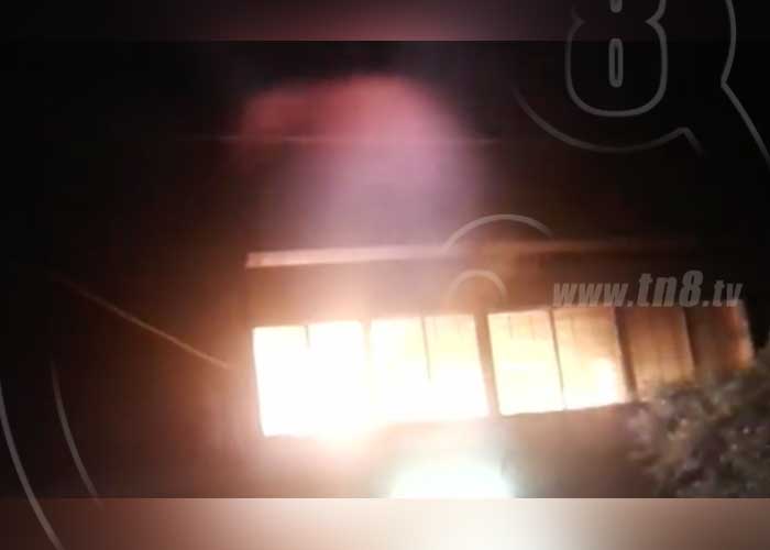 Lenguas de fuego de un voraz incendio reducen a cenizas accesorios y repuestos para vehículos almacenados en una bodega del segundo piso de una vivienda, en el barrio San Judas, de El Ceibo una cuadra al sur, una cuadra arriba.