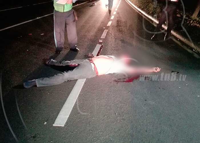 El impacto fue de tal magnitud que los zapatos del fallecido quedaron a más de 20 metros del cuerpo y el casco a una mayor distancia ya que no lo llevaba puesto. Tanto el cuerpo como la motocicleta quedaron al otro lado de la pista con dirección hacia Managua.