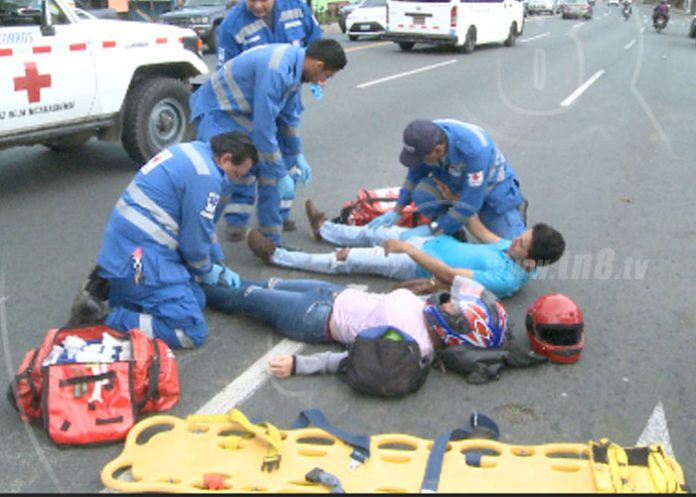 Wilber Corea, Erling Vallejos más Bony Gutiérrez fueron trasladados de emergencia a centros asistenciales de Managua por unidades de Cruz Roja Nicaragüense, socorristas que venían del km 13 de la Carretera Sur con pacientes lesionados en otro accidente.