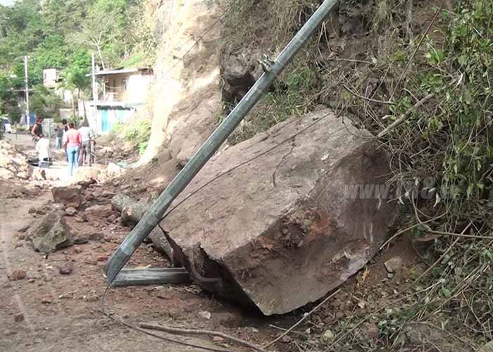 Los fuertes vientos que afectan al municipio de Boaco, como consecuencia del frente frío, dejó un poste telefónico colapsado y un deslizamiento de tierra sobre la carretera que conduce al municipio de Santa Lucía, provocando el paro del transporte vehicular sobre esta vía.