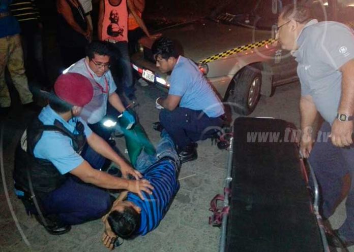 Con una fractura expuesta en la pierna izquierda más golpes en diversas partes del cuerpo resultó el peatón, Nestor José Parrales Navarro de 43 años, al ser atropellado por un taxi de los semáforos del Ivan Montenegro, una cuadra arriba, Managua.