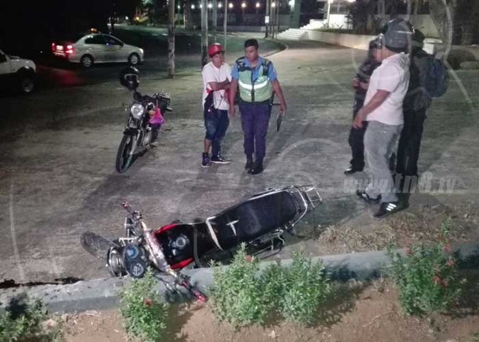 Solieth Massiel Fletes, de 38 años, resultó gravemente lesionada al caer de la motocicleta en la que viajaba como acompañante y que era conducida por Dixon Noel Pérez Silva, de 24 años, quien resultó ileso en el accidente ocurrido frente a la Fuerza Naval, en Managua.