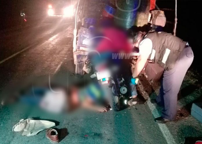 Según el conductor de este vehículo que estaba parqueado ellos estaban reparando una llanta que se le había ponchado cuando de repente vieron que un objeto se mueve a alta velocidad y se fue a estrellar contra el camión inmediatamente los dos motociclistas murieron. Los jóvenes responden a los nombres Henry Zeledón y José Santos Zeledón ambos de 45 años de edad y uno de ellos es de la comunidad del Capulín carretera Granada a Masaya el otro fallecido habitaba en el kilómetro 87 carretera Nandaime a Rivas y venían de un taller de artesanías que esta en el sector de Ochomogo.