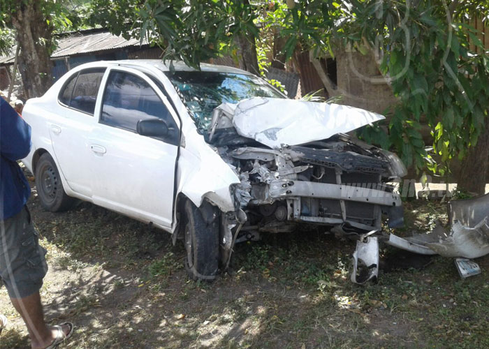 Supuestamente por no colisionar contra un furgón que aventajó a exceso de velocidad y de forma violenta, el conductor de un vehículo se desvió y chocó contra un poste de luz en el kilómetro 15 de la Carretera Vieja a Tipitapa.