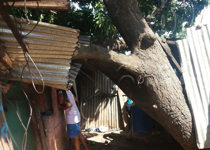 Un hogar quedó destruido luego que un enorme árbol de mango haya cedido por los fuertes vientos que se están registrando en Nicaragua, hecho ocurrido en el barrio René Polanco de Managua.