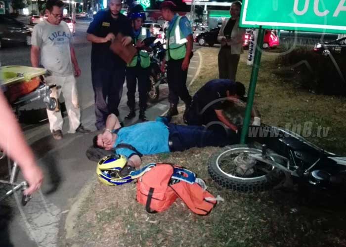 Con golpes de consideración resultó un agente de la Policía tras ser impactado por la conductora de una camioneta que, según un testigo, invadió el carril del uniformado, esto en las inmediaciones de la rotonda Rubén Darío, en Managua.