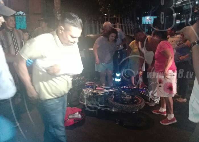 Cruz quedó tendido boca abajo sobre el pavimento, en cambio, la señora recibió el golpe en la cabeza; además de quedar con la motocicleta sobre sus piernas. Afortunadamente, los dos portaban sus cascos de protección. Ambos fueron auxiliados por técnicos en emergencias médicas de Cruz Roja Nicaragüense. Don Leonardo presentaba una posible dislocación en uno de sus hombros mas excoriaciones en el cuerpo, fue llevado al hospital Manolo Morales para ser atendido por los galenos de turno. En cambio, doña María resultó con una herida en su cabeza, un golpe fuerte en una de sus piernas, mas excoriaciones; esta fue llevada al hospital Monte España, donde está asegurada.