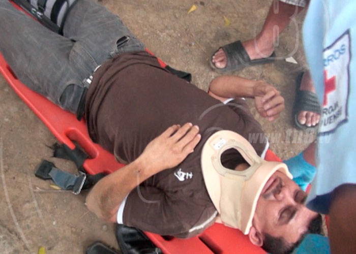 Una unidad de la Cruz Roja nicaragüense se presentó al lugar para atender a los lesionados uno de ellos aun en el suelo y el otro con lesiones menos graves sentado en una silla ambos quejándose del fuerte dolor que padecían sus cuerpos en ese momento y es que el golpe recibido fue bastante fuerte.