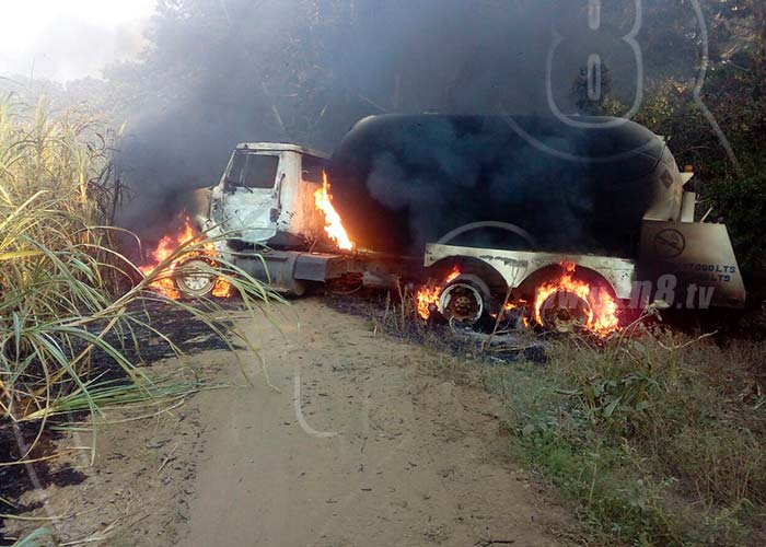 El camión cisterna de la empresa Z Gas, ardió en llamas, a eso de las 4:30 minutos de la tarde de este viernes, entre los cañaverales de la finca Elisa, sector Gancho "La Mona" ubicada al sur oeste de la ciudad de El Viejo – Chinandega.