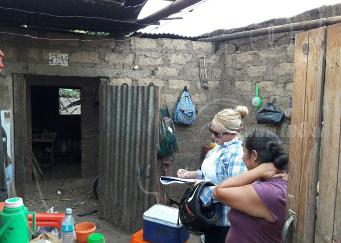 Miembros de la Promotoría Social, área de proyectos de la Alcaldía y el equipo político del FSLN acudieron inmediatamente para asistir a las familiasdiagnóstico de daños para el posterior apoyo a las familias afectadas por el fenómeno natural.