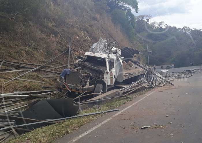 El conductor del camión placa M 254 112, Bismark Suárez, el cual transportaba perlines y varios materiales de construcción, aparentemente perdió el control dio varias vueltas de campana hasta terminar a orillas de la carretera.