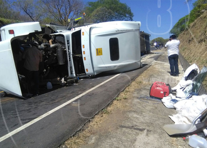 El cargamento procedía de San Isidro, Matagalpa, con dirección hacia Managua. Y pese a semejante percance, el producto quedó intacto y solo un par de sacos resultaron rotos.
