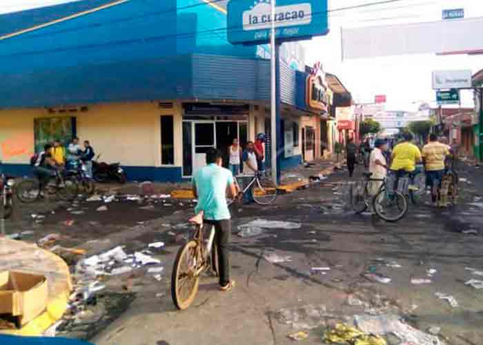 La mañana de este domingo las calles y algunos comercios del municipio de Masaya amaneció completamente destruida por vándalos que saquearon varios establecimientos aprovechándose de la situación que se vive el país.