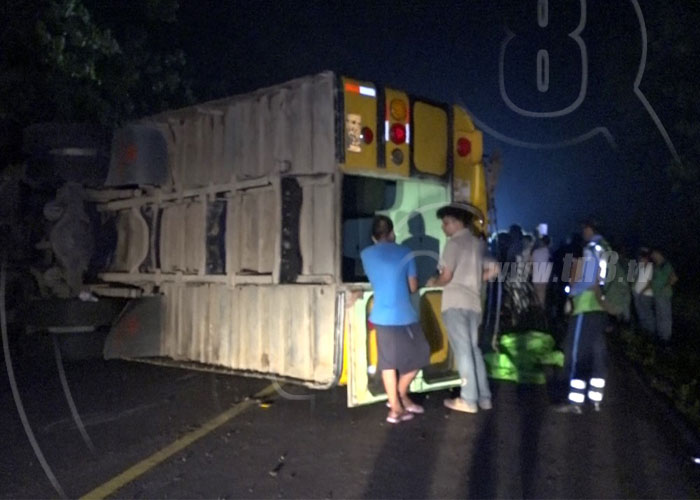 A la altura del kilómetro 100 de la Carretera Boaco a Río Blanco, en la comarca Santa Blanca, se registró la noche del lunes un accidente de tránsito que dejó como resultado 13 personas lesionadas.
