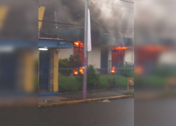 #LoUltimo #Nicaragua ??| Momento exacto en el que ardía en llamas las instalaciones de la fiscalía en horas de esta mañana en el municipio de #Masaya, quemada por delincuentes de la derecha. #NicaraguaQuierePaz? #NoALaViolencia pic.twitter.com/6soXi0Nm9h