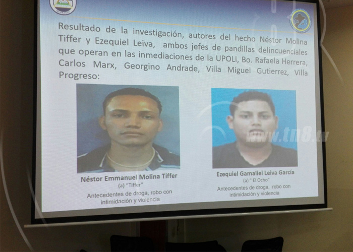 Néstor Molina Tiffer, alias "Tiffer" y Ezequiel Leiva García, alias "El Ocho", son los circulados por la institución del orden por cometer los delitos, quienes son jefes de pandillas del sector de los barrios Rafaela Herrera, Carlos Marx, Georgino Andrade, Villa Miguel Gutiérrez y Villa Progreso. Todo esto son inmediaciones de la UPOLI.