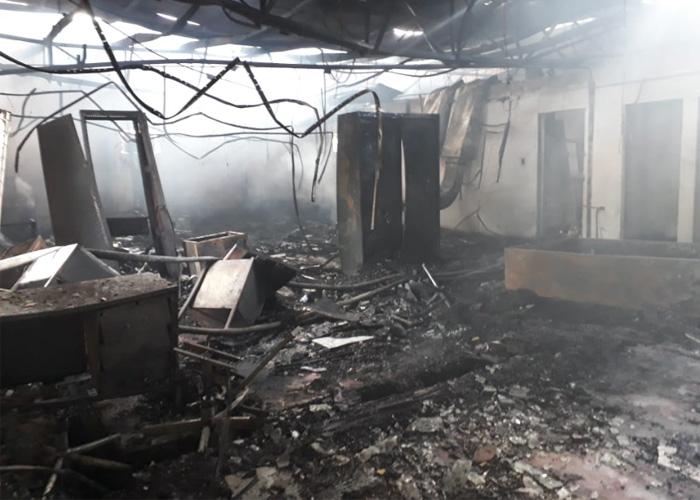 En horas tempranas se miraban todavía brasas en el suelo por el fuerte incendio que consumió todo tipo de mobiliario y equipos de oficina dentro de Radio Nicaragua. Los atacantes llegaron armados con morteros, armas de guerra y bombas molotov con el objetivo de desaparecer el medio de comunicación.