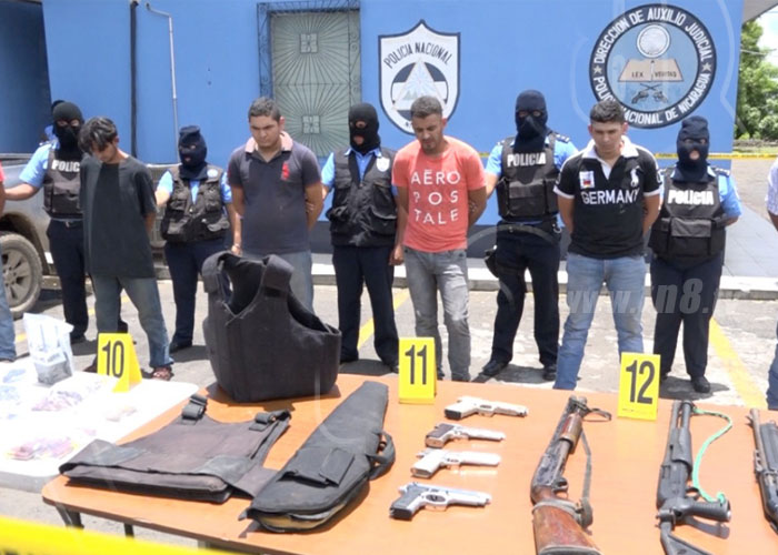 En horas del mediodía de este miércoles la Policía Nacional dio a conocer la captura de seis sujetos que integraban la peligrosa banda delincuencial "Villanueva", que se encargaba de cometer diversidad de delitos en los municipios del occidente de Nicaragua, entre estos crimen organizado, lavado de dinero, tenencia y uso de arma de fuego restringidas y municiones.