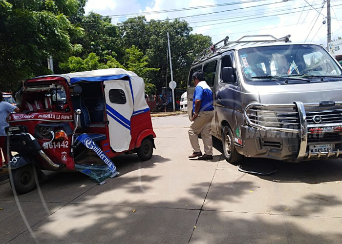 En una de las calles principales del Reparto Schick, en Managua, se produjo este martes por la mañana un accidente de tránsito cuyos protagonistas son el conductor de un microbús escolar y un caponera en la que viajaban cinco personas.