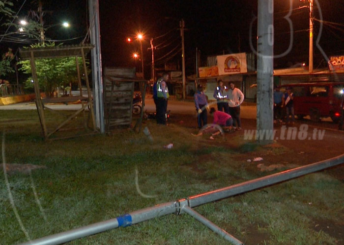 “Ellos venían de Managua para Santa Elena y por la velocidad pasaron recto en la rotonda y se estrellaron con el poste del tendido telefónico, venían tomados uno murió y el otro va fracturado al Alemán…Aquí es bien peligroso siempre pasan recto por no bajar la velocidad”, manifestó el taxista, Elías Molina.