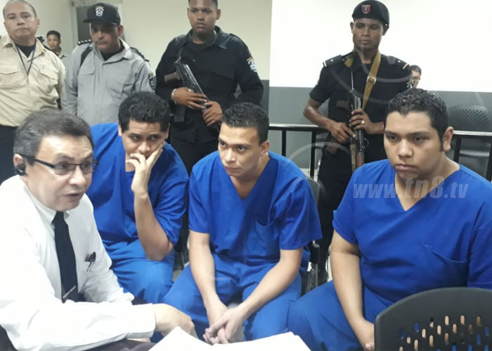 A eso de las 9 de la mañana de este lunes 24 de septiembre, en el Juzgado Séptimo Distrito Penal de Juicio, en Managua, a cargo del juez Melvin Vargas, inició el proceso judicial de Juicio Oral y Público en contra de los terroristas Marlon Fonseca Román, Kevin Espinoza y Hanssel Vásquez Ruiz, acusados de ser los responsables de quemar las instalaciones de Tu Nueva Radio Ya.