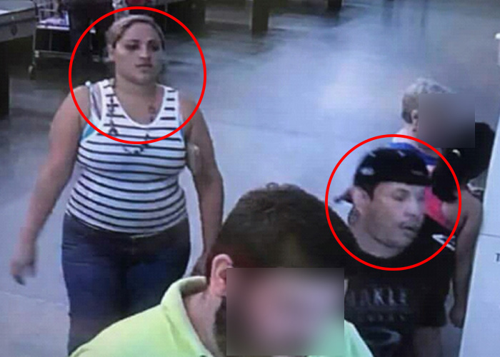 En las fotografías, obtenidas a través de las cámaras de seguridad, se puede apreciar a una mujer camisa a rayas sosteniendo en una de sus axilas la cartera después de cometer el delito. En la publicación que hizo Arlen en su red social Facebook, afirma que el hombre de camiseta negra también formaba parte de estos ladrones.