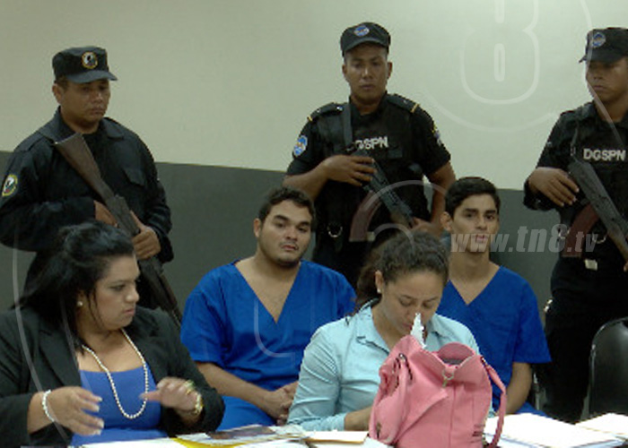 Christopher Olivas Valdivia, Byron Corea Estrada, Lesber Rubí Olivares y otros cuatro sujetos fueron llevados este martes a los Juzgados de Managua al proceso de audiencia inicial en el Juzgado Quinto Distrito Penal de Audiencias, los cuales son acusados por incendio, terrorismo, daño agravado y robo agravado.