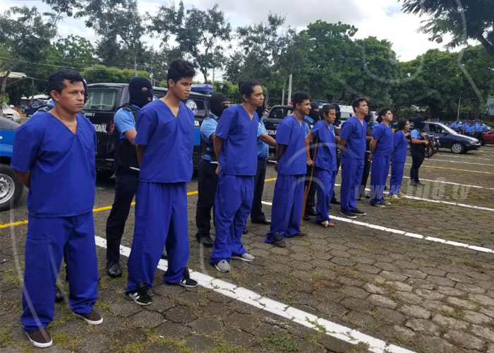 La Policía Nacional presentó este miércoles a delincuentes que fueron capturados por cometer una serie de delitos en Managua, entre ellos el incendio y destrucción del preescolar Arlen Siu, ubicado en la UNAN-Managua.
