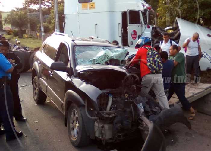 La triple colisión ocurrida la mañana de este jueves en la Cuesta El Plomo, Managua, que involucra un furgón, dejó a cuatro personas lesionadas