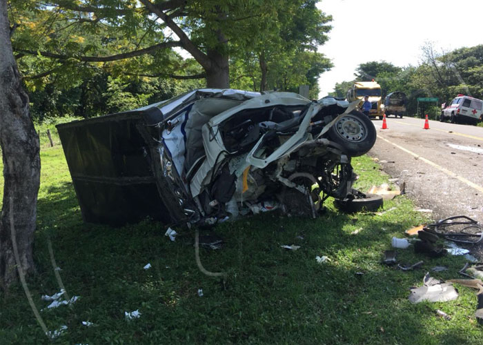 Entre los lesionados se encuentran dos pasajeros del autobús que viajaban adelante, y el conductor del camioncito Mahonry Harabett Cordóba Espinoza, de 25 años, quien quedó atrapado entre la chatarra del vehículo, por lo que fue trasladado en estado reservado a una clínica privada de Chinandega.