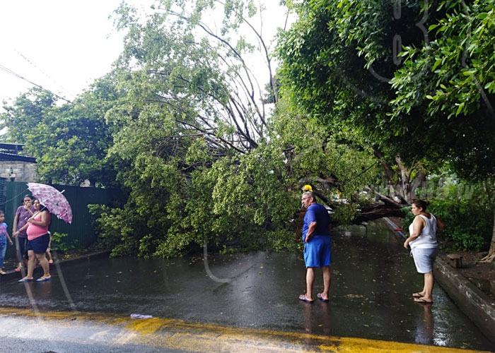 En el lugar ya se encontraban laborando hombres del servicio de emergencia de la Dirección General de Bomberos y trabajadores de la Alcaldía de Managua para retirarlo, ya que además creaba obstrucción del libre paso vehicular. El árbol estaba ubicado sobre una acera en una vía principal.