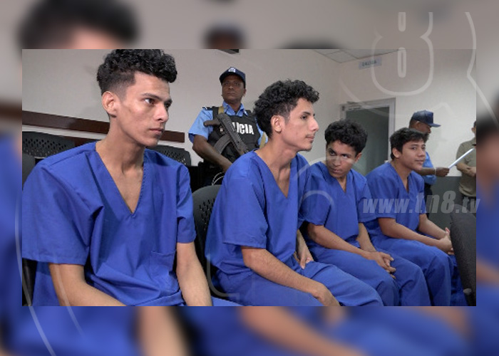 Bajo la custodia de la Dirección de Auxilio Judicial Nacional, fueron llevados al juzgado Noveno Distrito Penal de Audiencias, a cargo de su titular, el juez Celso Urbina, los sujetos Eric Antonio Carazo Talavera de 18 años, Christopher Marlon Méndez de 23 años, Ulises Rubén Toval Ríos de 23 años y Steven José Espinosa ó Misael Espinosa de 24 años de edad.
