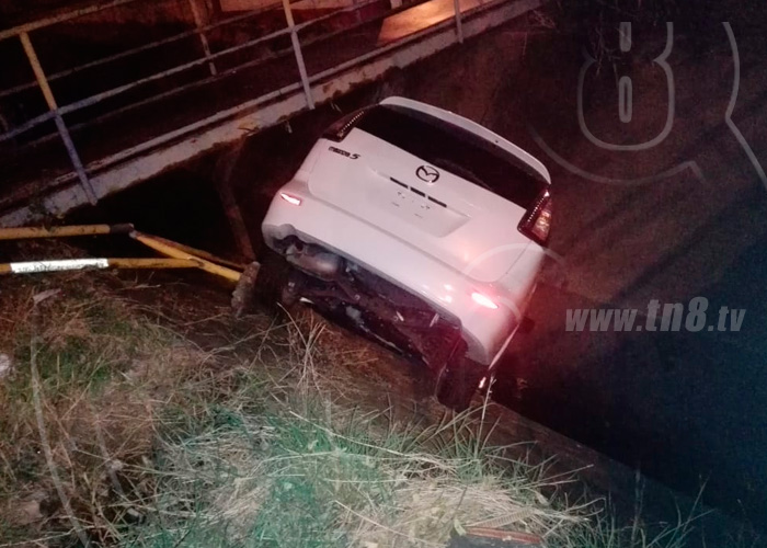 El vehículo quedó incrustado en el cauce del puente ubicado contiguo a los semáforos del populoso barrio El Riguero.