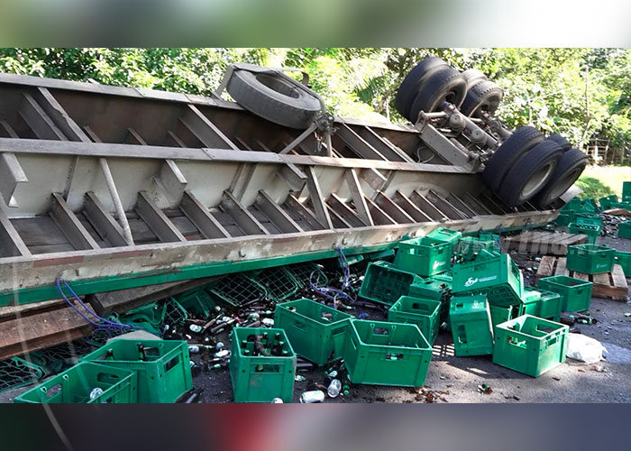 Un accidente de tránsito deja cuantiosas pérdidas materiales y 1 persona lesionada en la comunidad El Paraíso del municipio de Boaco. El conductor del pesado camión relataba que el hecho sucede luego de que un taxi le invadió carril, mientras testigos aseguraban que el conductor de la rastra se movilizaba a exceso de velocidad.