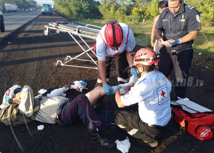 Uno de los involucrados corresponde al nombre de José Martín González Mairena, quien trabaja como guarda de seguridad y es habitante de la comarca Las Banderas del municipio de Tipitapa. Este viajaba de norte a sur y producto del fuerte impacto resultó con fractura expuesta en el antebrazo izquierdo y fractura expuesta en el tobillo izquierdo.