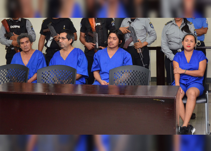 La mañana de este miércoles en la sala 8 del Juzgado Noveno Penal de Audiencia de los Juzgados de Managua, se realizó audiencia inicial en contra de José Lázaro García Lopez, Ruth Ester Matute Valdivia, Danny de los Ángeles García González y Hugo Ramón Arista López; los cuales son acusados por los delitos de fabricación, tráfico, tenencia y uso de armas restringidas, sustancias o artefactos explosivos en prejuicio del Estado de Nicaragua.