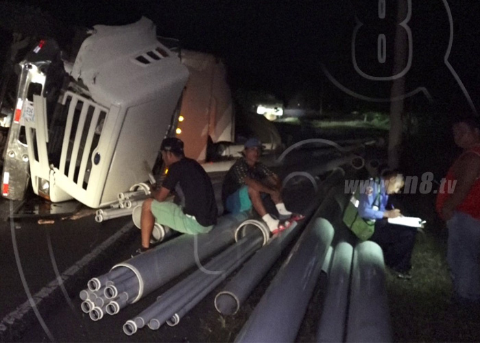 En el accidente, un camión que se dirigía con rumbo de Managua hacia El Rama transportando tubos de PVC para trabajar en un proyecto, del fuerte impacto se dio vuelta; también la camioneta conducida por Wilmer Laine quedó hecha chatarra la parte trasera, mientras que el último vehículo que provocó el accidente se dio a la fuga; pero minutos más tarde fue detenido en el empalme de Boaco por la institución del orden.