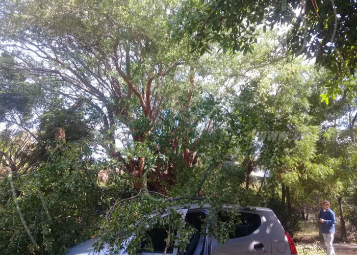 El susto de sus vidas se llevaron tres personas que viajaban en un vehículo cuando inesperadamente las ramas de un frondoso árbol cayeron sobre el carro. Dicho auto se movilizaba este miércoles sobre la carretera hacia el municipio de Moyogalpa, en la Isla de Ometepe.