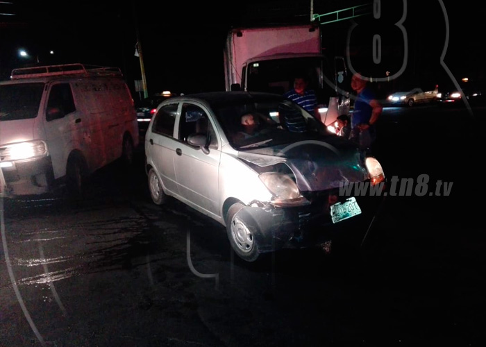 El irrespeto a la luz roja de los semáforos del antiguo Hospital Militar, Managua, fue la supuesta causa de una aparatosa colisión la noche del miércoles entre un taxi y un vehículo particular que dejó un saldo de tres personas lesionadas.