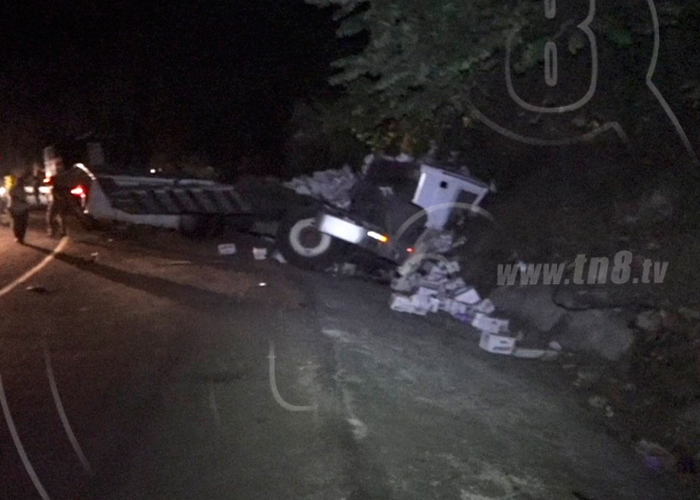 El accidente se produjo luego de que el conductor de la rastra se desplazara a exceso de velocidad y al llegar a una vuelta perdiera el control del pesado camión.