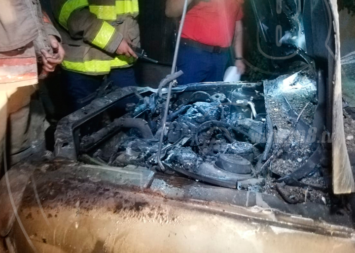 Este viernes en la noche un vehículo tomó fuego de propiamente en los semáforos de La Ceibita en Managua.