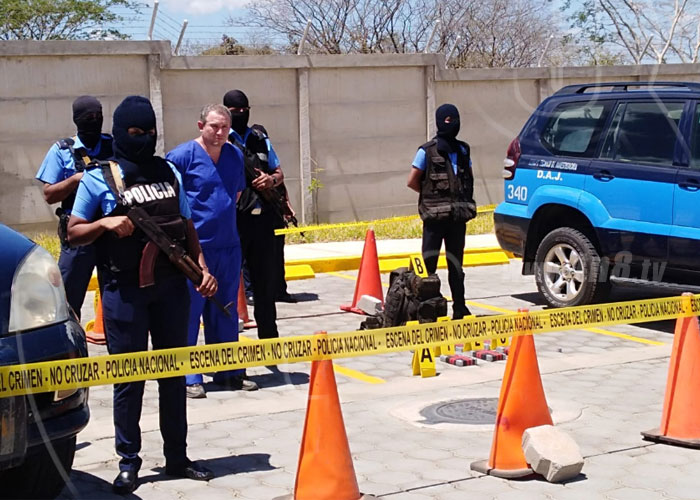"Edward Enrique Lacayo Rodríguez es parte de un nuevo golpe al crimen organizado y al narcotrafico en perjuicio del Estado y sociedad nicaragüense, y en cumplimiento a la estrategia nacional del muro de contención que efectúa nuestro Gobierno de Reconciliación y Unidad Naciónal, hoy viernes 15 de marzo a la una de la madrugada en el lugar conocido como Las Calabazas, comarca El Ostional, departamento de Rivas, la Policía Nacional capturó al delincuente Edward Enrique Lacayo Rodríguez de 45 años de edad, quien se hacía acompañar de dos sujetos, los cuales lograron escapar al momento de la detención, aprovechando la oscuridad del lugar. El preso trasladaba dentro de una mochila seis paquetes de forma rectangular envuelto con cinta adhesiva color gris negro y rojo, la que salió positiva cocaína en la respectiva prueba de campo", dijo el comisionado general Luis Pérez Olivas, jefe de la Dirección de Auxilio Judicial Nacional.