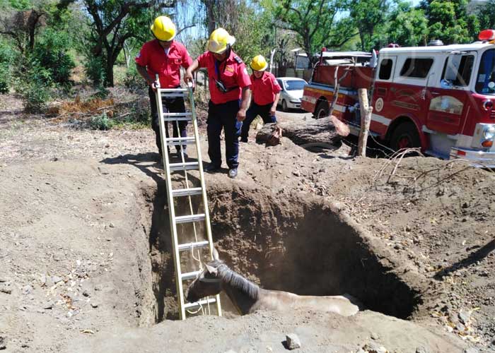 #AHORA #Nicaragua | El trabajo de miembros del Benemérito Cuerpo de Bomberos junto a pobladores de Valle Dorado, sector de refinería en #Managua, lograron rescatar a equino que se había precipitado a un hoyo.