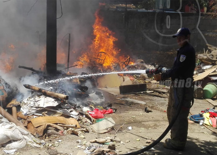 Fue gracias a la rápida intervención de los bomberos que se evitó que las llamas de un incendio en una chatarrera clandestina se propagara a una vivienda en el barrio La Primavera de Managua.