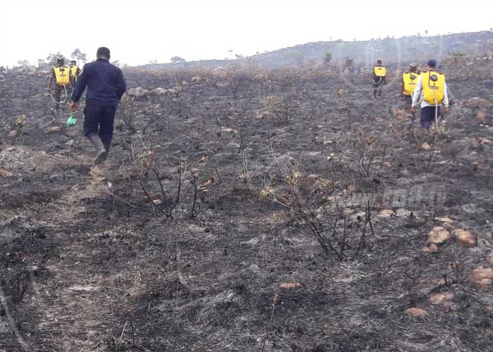 Este pasado domingo, las brigadas contra incendio de los bomberos, Quinto Comando Militar Regional, trabajadores de finca, MARENA, INAFOR, Alcaldía entre otras instituciones del estado; trabajaron para lograr sofocar las fuertes llamas de un incendio de 500 manzanas de malezas y pastizales seco en la finca del señor René Hurtado, ubicada en las mesetas de Hato Grande a 12 Kms al suroeste de la ciudad de Juigalpa.