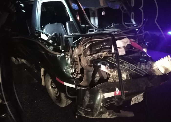 El hecho se dio en el km 27 carretera vieja a León, los lesionados a bordo del microbús, José Muñoz de 38 años y su acompañante Jhony Flores, según testigos, ambos viajaban a gran velocidad y aventajando por lo que no se percataron en el camión que transporta ganado.