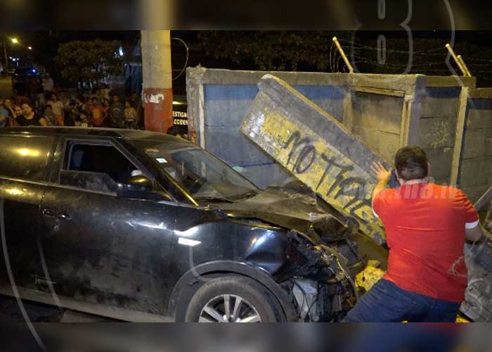 Uno de los muros del colegio Republica de Canadá quedó totalmente destruido al ser impactado por dos vehículos la noche de este miércoles en el barrio Jónathan González.
