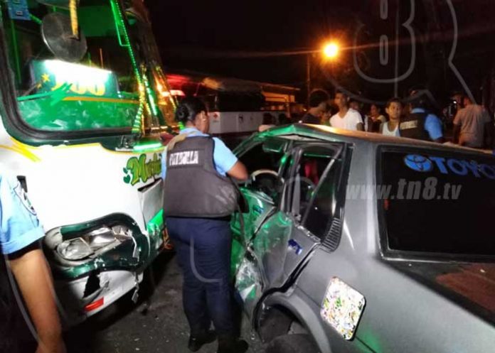 Fuerte impacto entre un bus y un vehículo deja dos lesionados