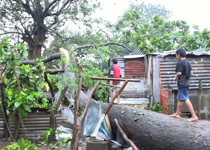 Frondoso árbol cae sobre dos viviendas en Nandaime